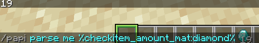 • give 给予物品 %checkitem_give_mat:diamond% // 给予玩家一个钻石